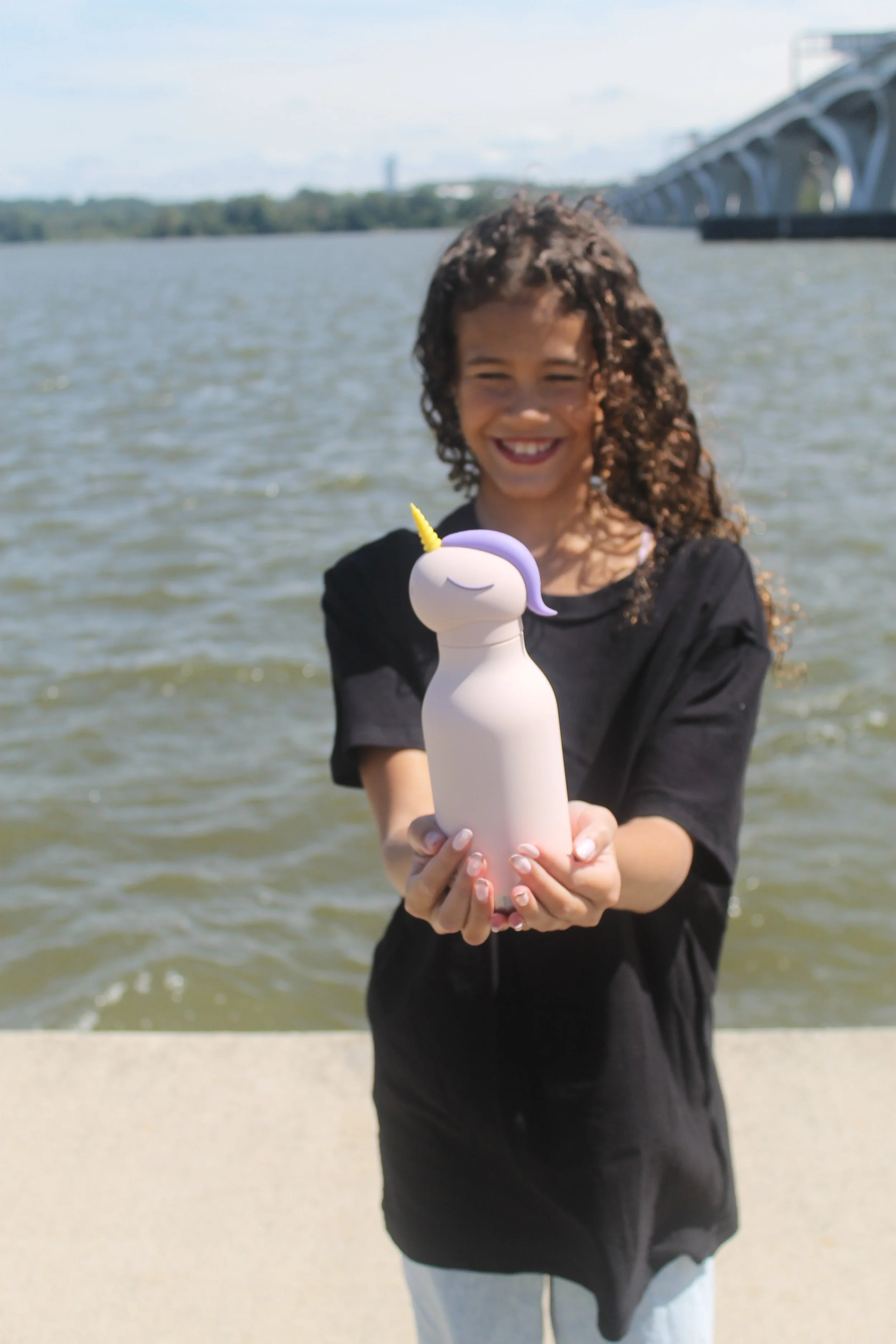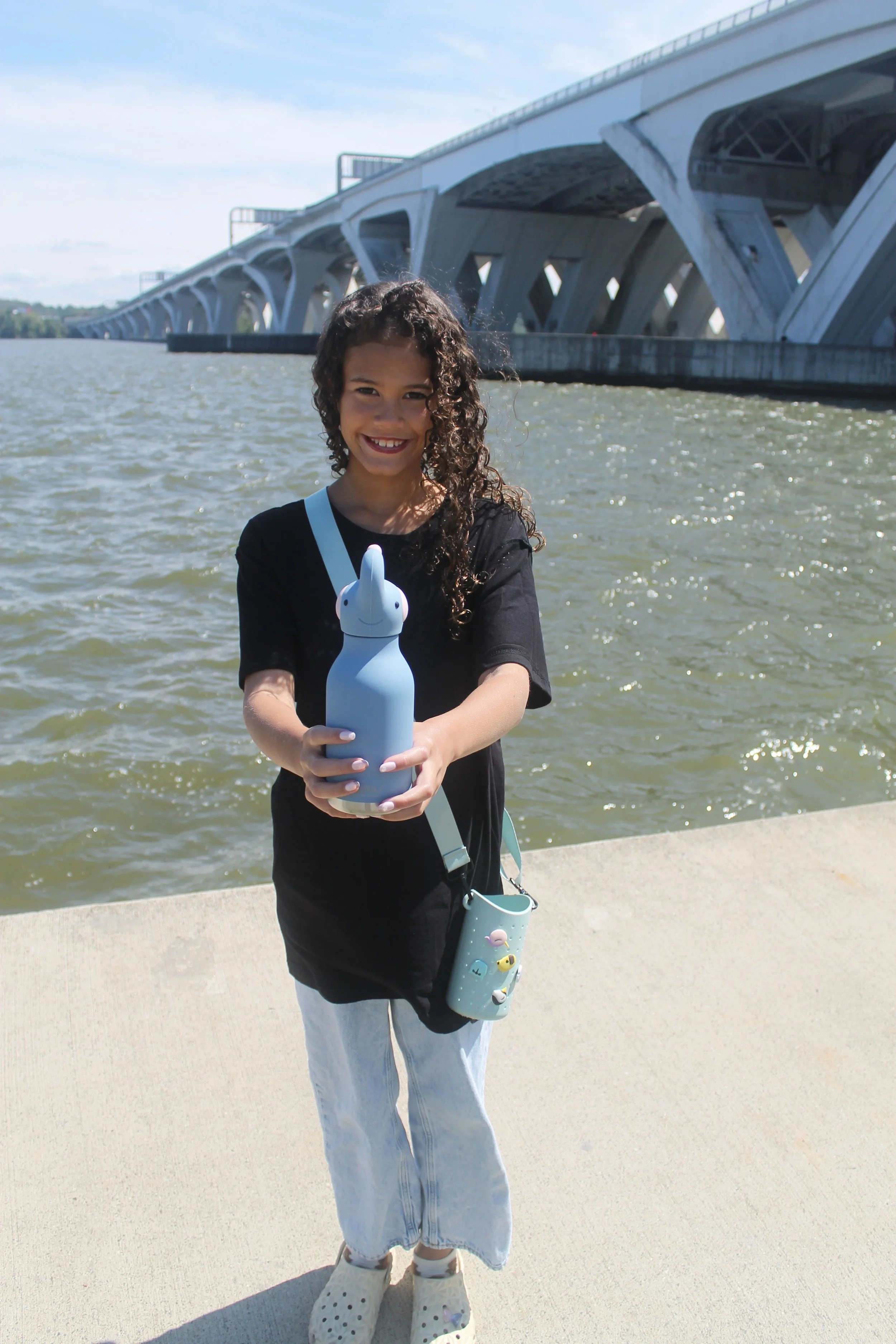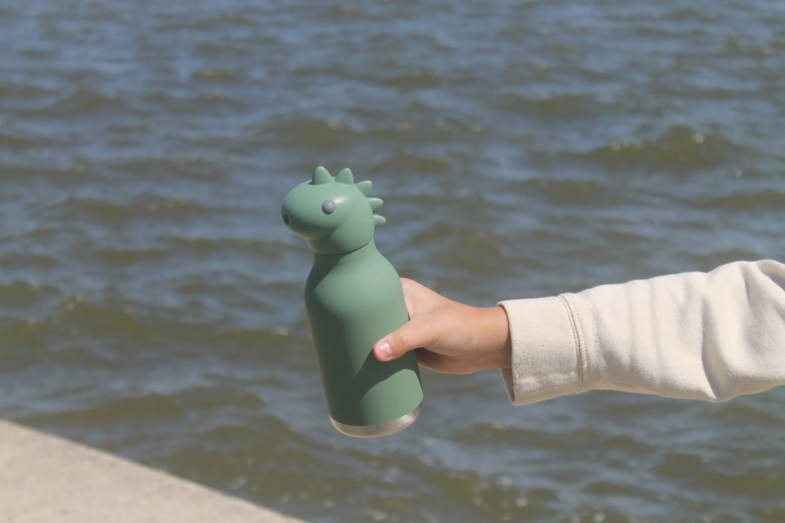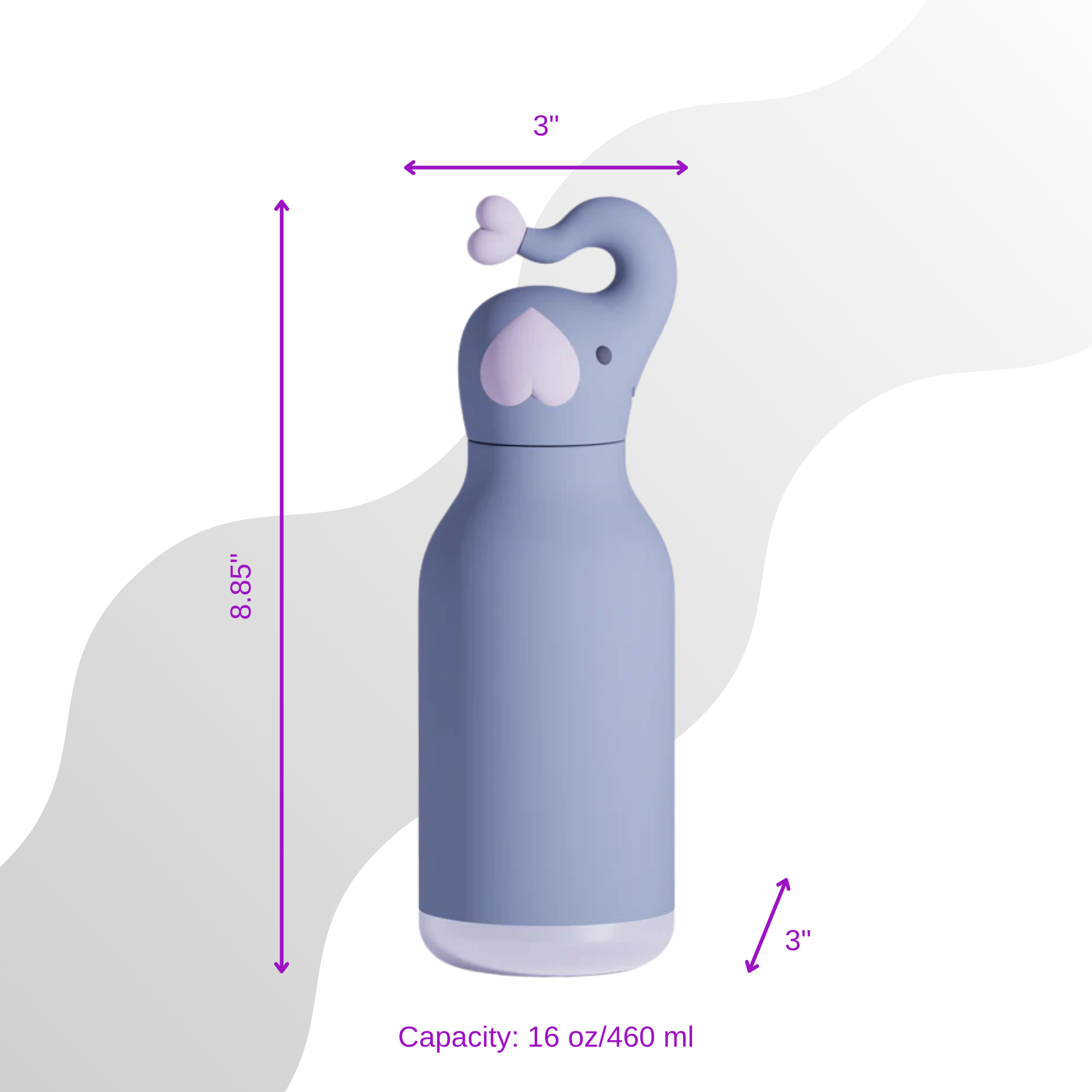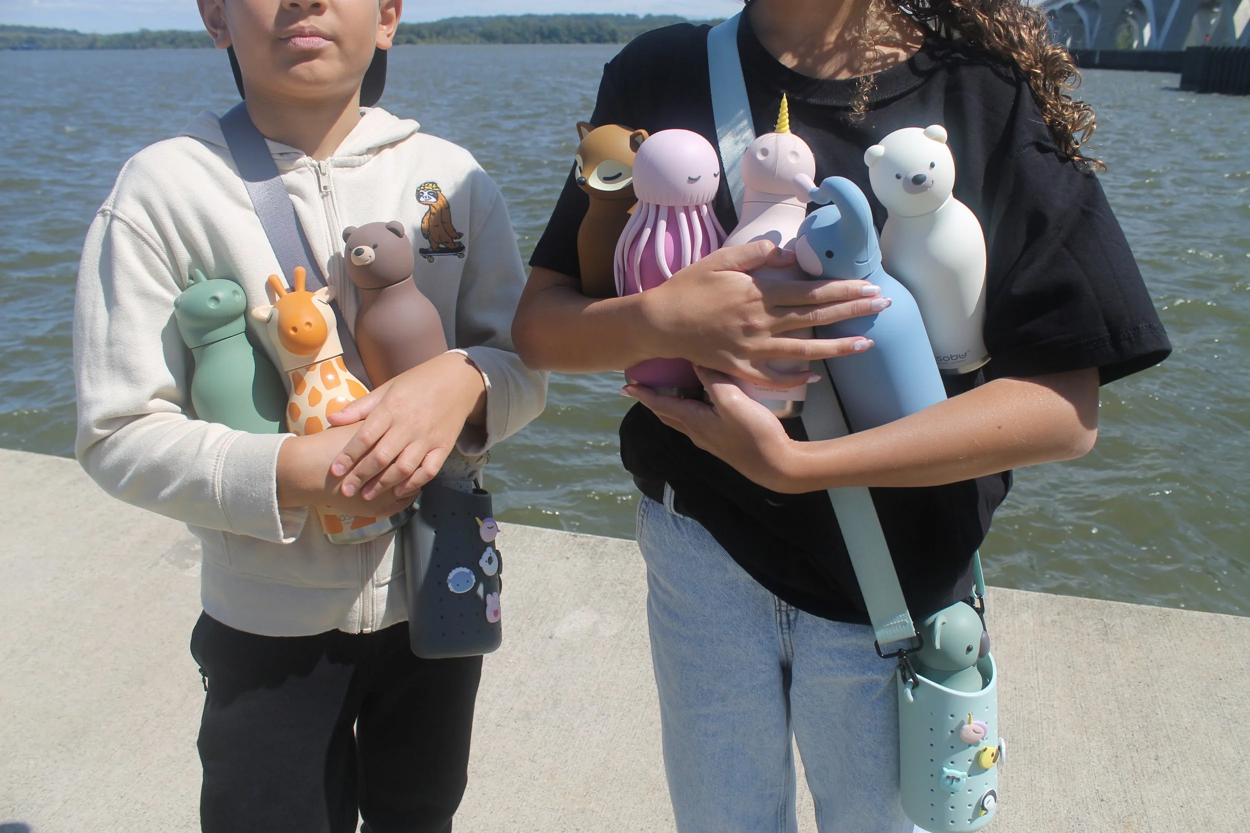 Made from stainless steel, these BPA-free, eco-friendly water bottles come with a flexible, silicone, removable straw and a screw-on lid for a spill-proof seal. Measuring approximately 8 inches high and 3 inches wide with a 16-ounce capacity, they fit perfectly in any school bag, or purchase one of our carriers for hands-free, on-the-go play.