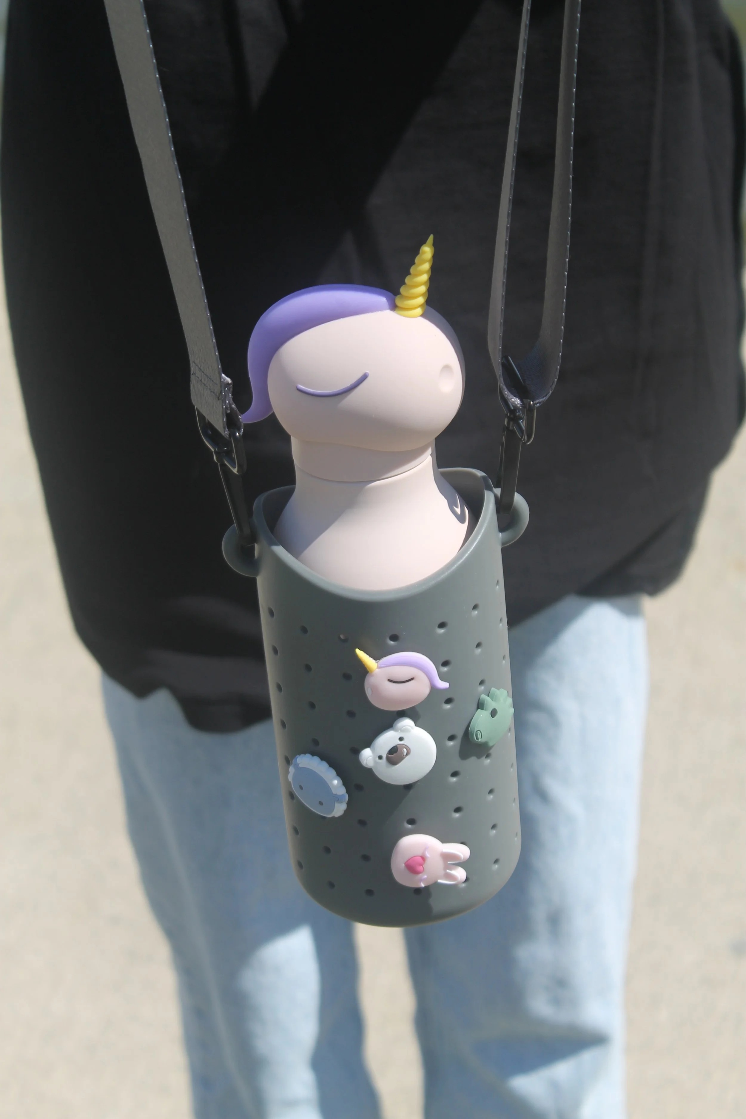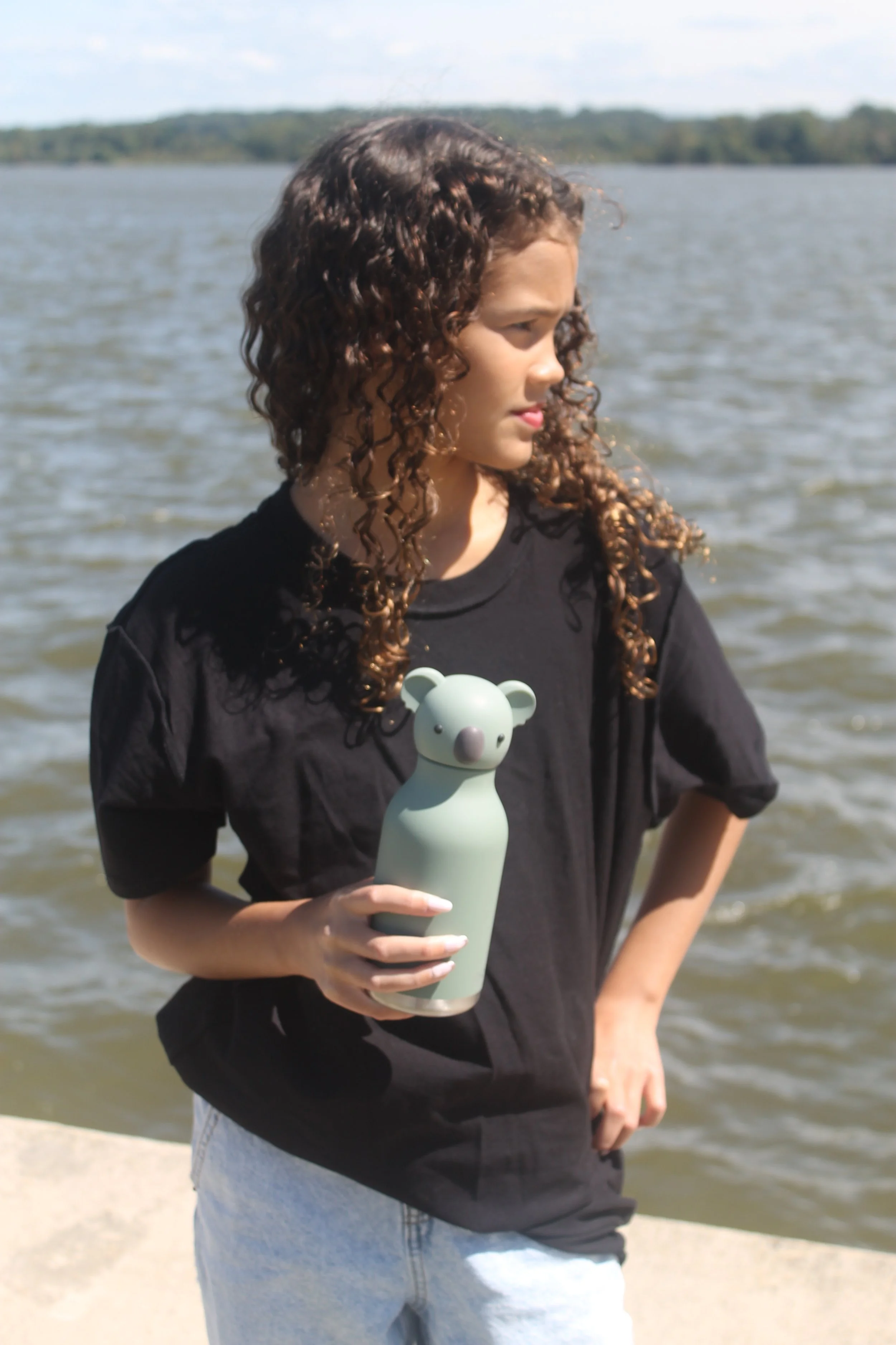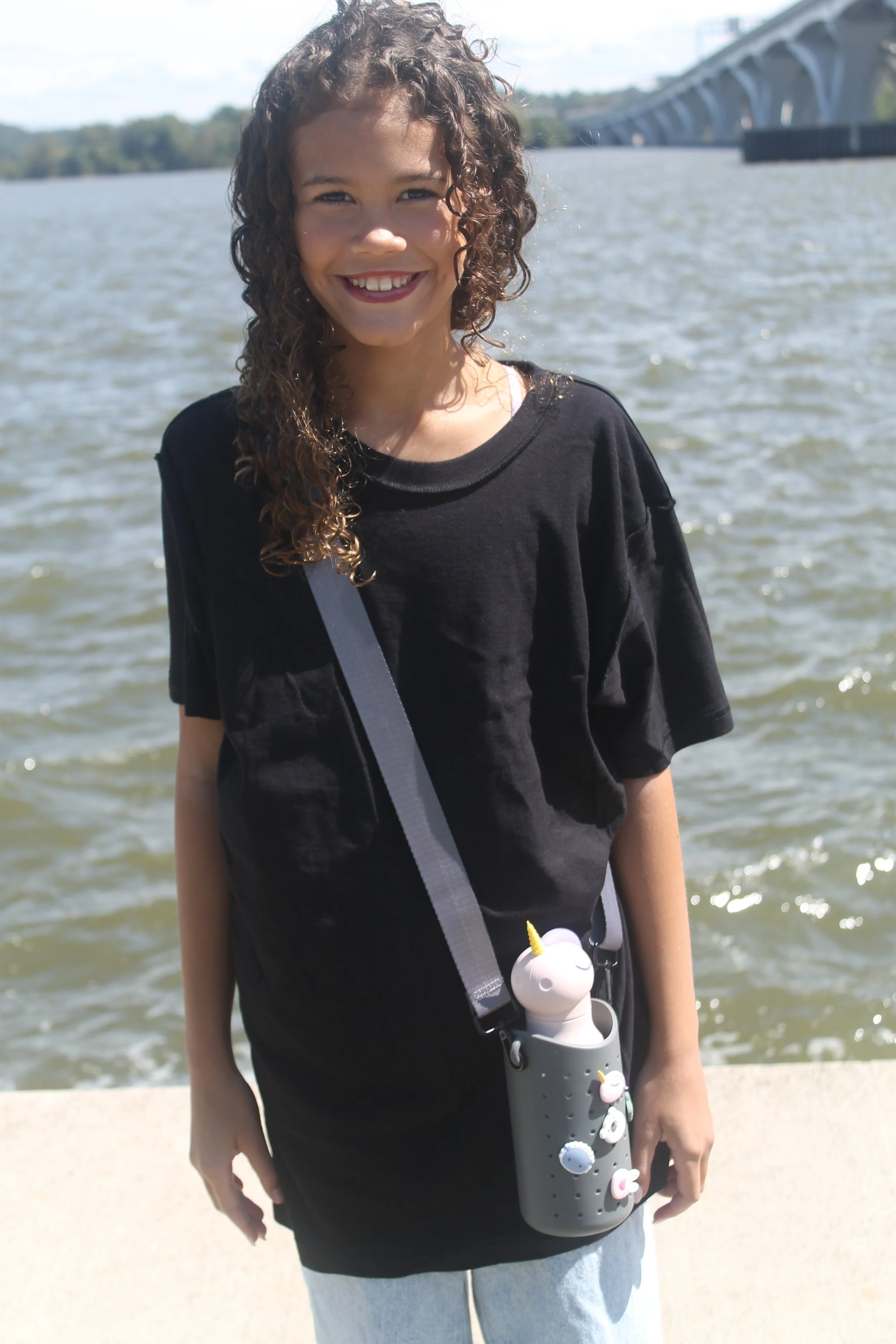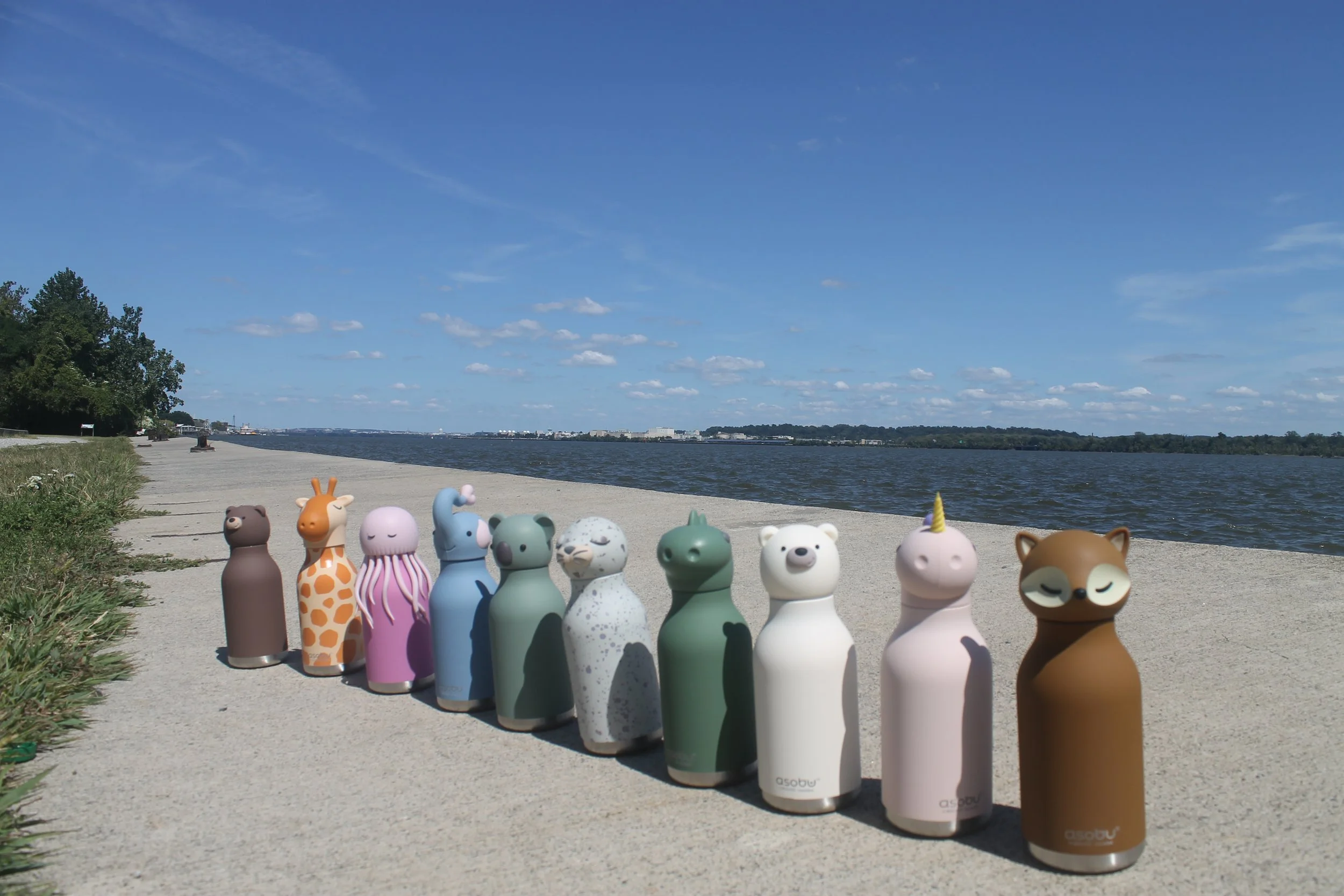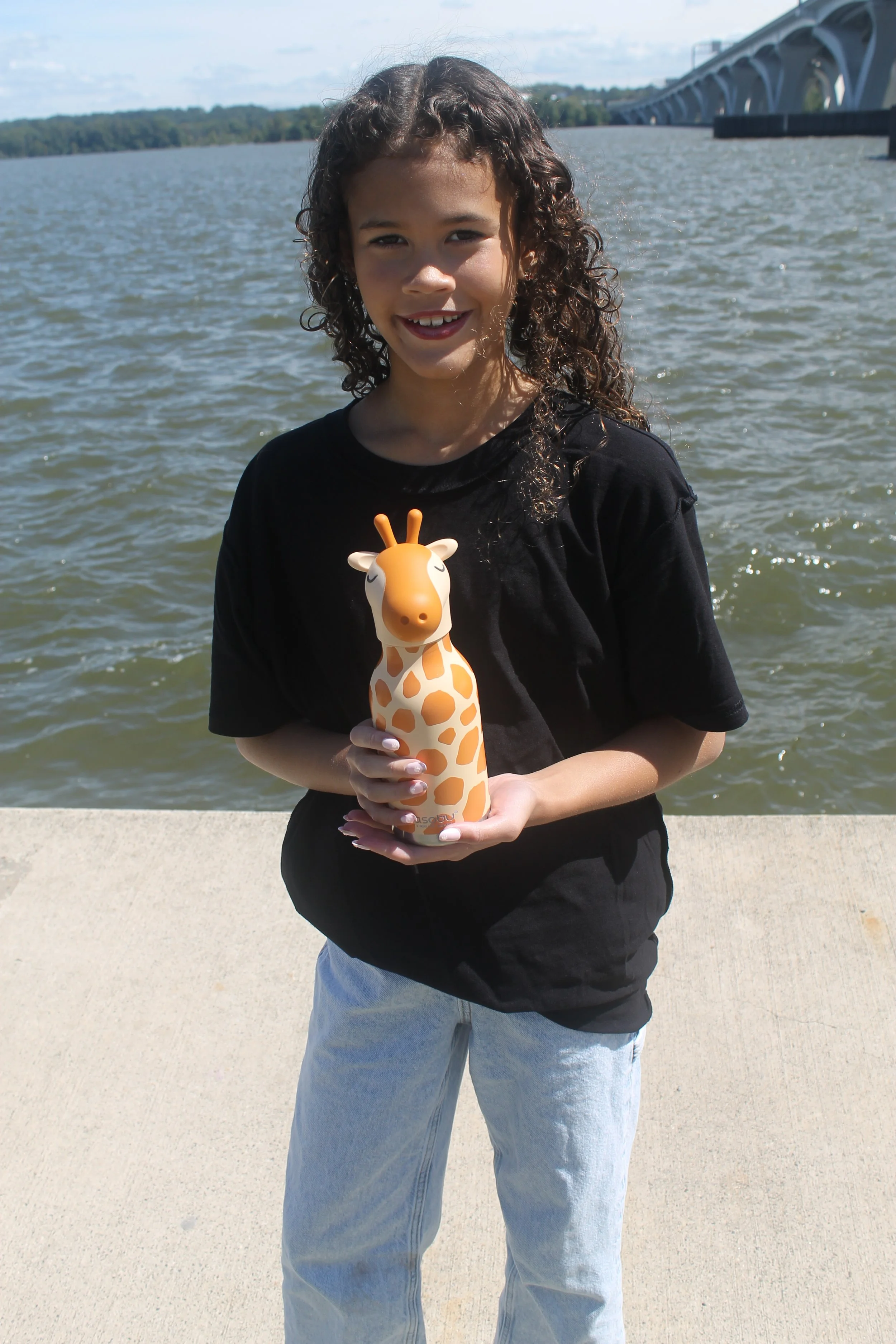 Made from stainless steel, these BPA-free, eco-friendly water bottles come with a flexible, silicone, removable straw and a screw-on lid for a spill-proof seal. Measuring approximately 8 inches high and 3 inches wide with a 16-ounce capacity, they fit perfectly in any school bag, or purchase one of our carriers for hands-free, on-the-go play.