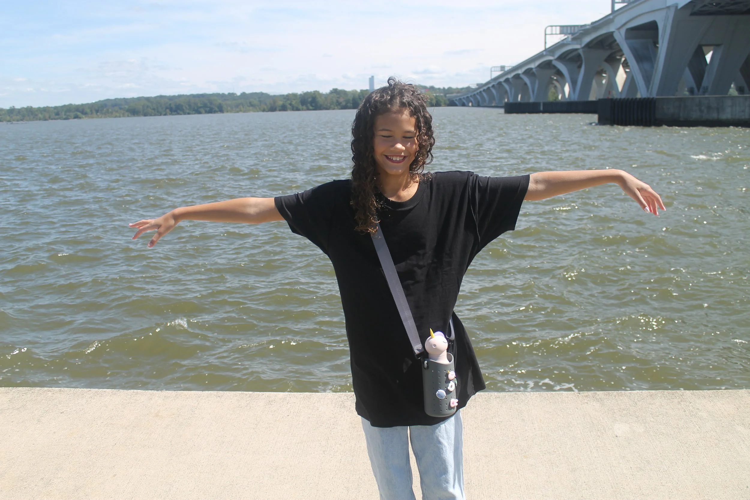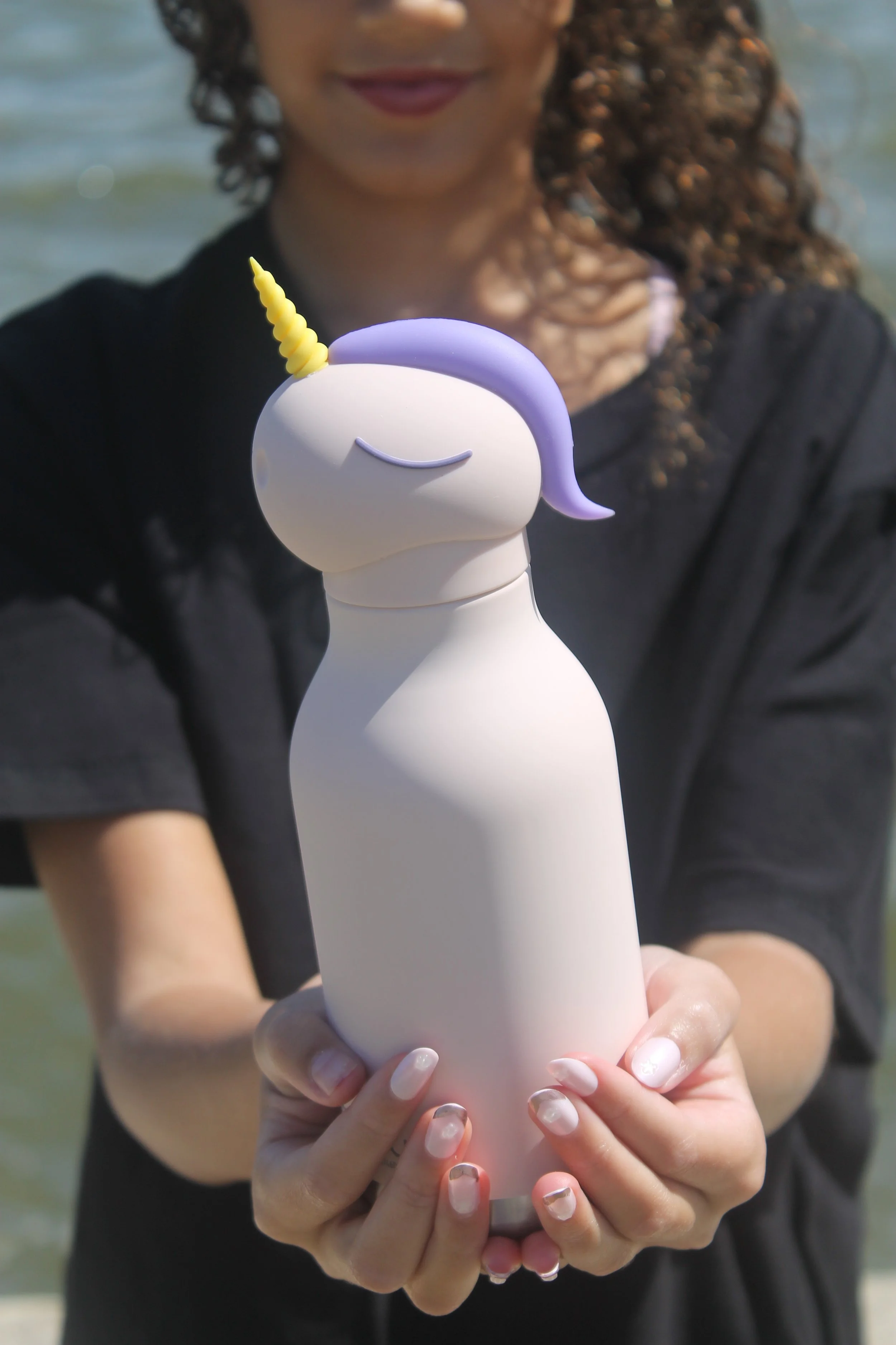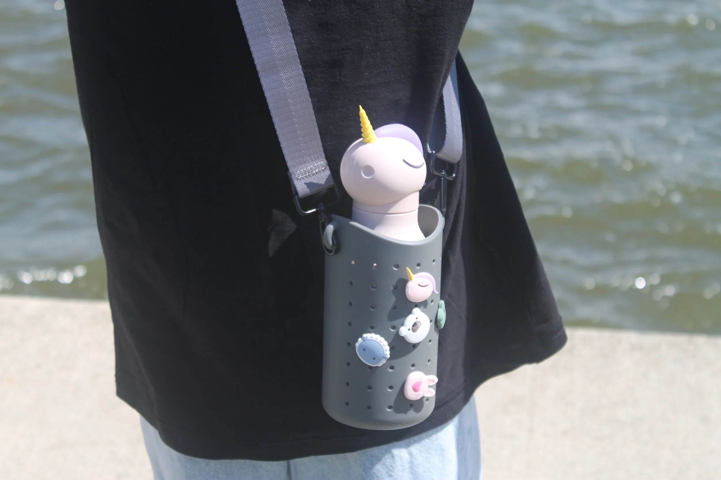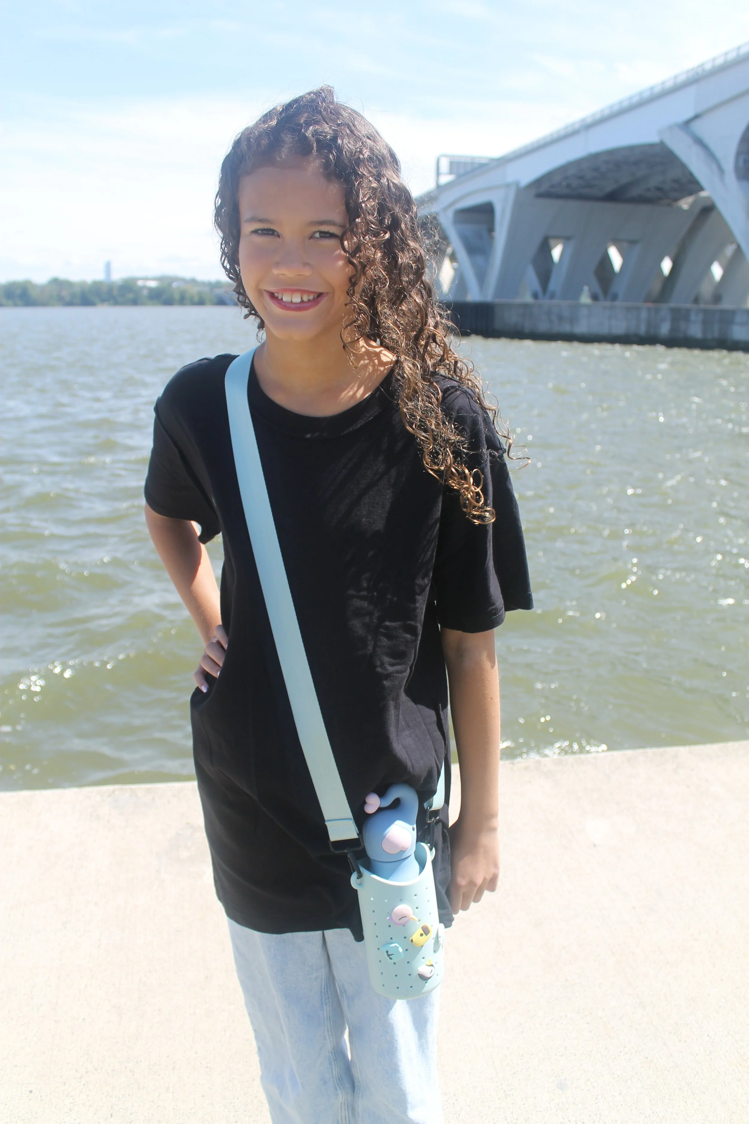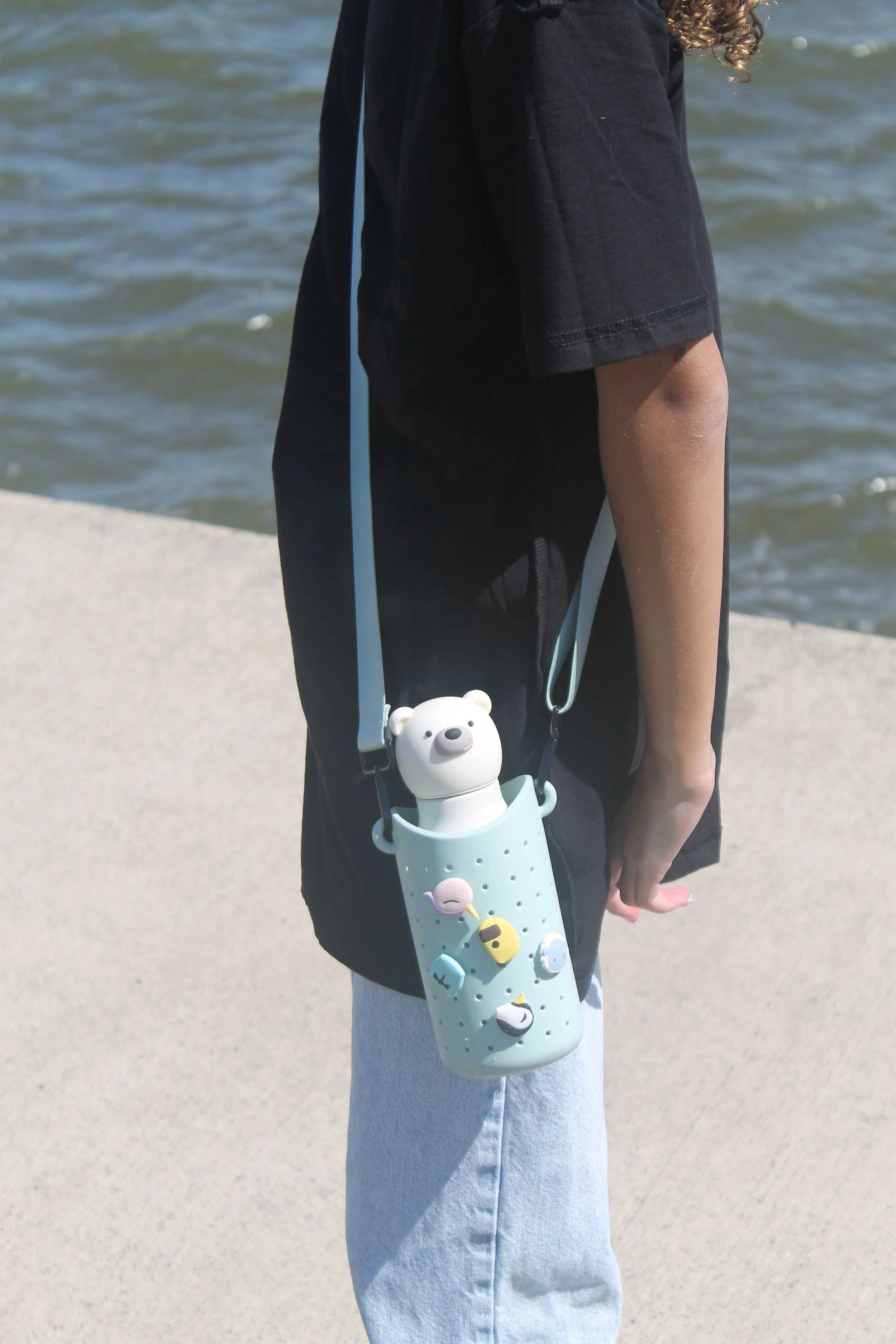 Made from stainless steel, these BPA-free, eco-friendly water bottles come with a flexible, silicone, removable straw and a screw-on lid for a spill-proof seal. Measuring approximately 8 inches high and 3 inches wide with a 16-ounce capacity, they fit perfectly in any school bag, or purchase one of our carriers for hands-free, on-the-go play.